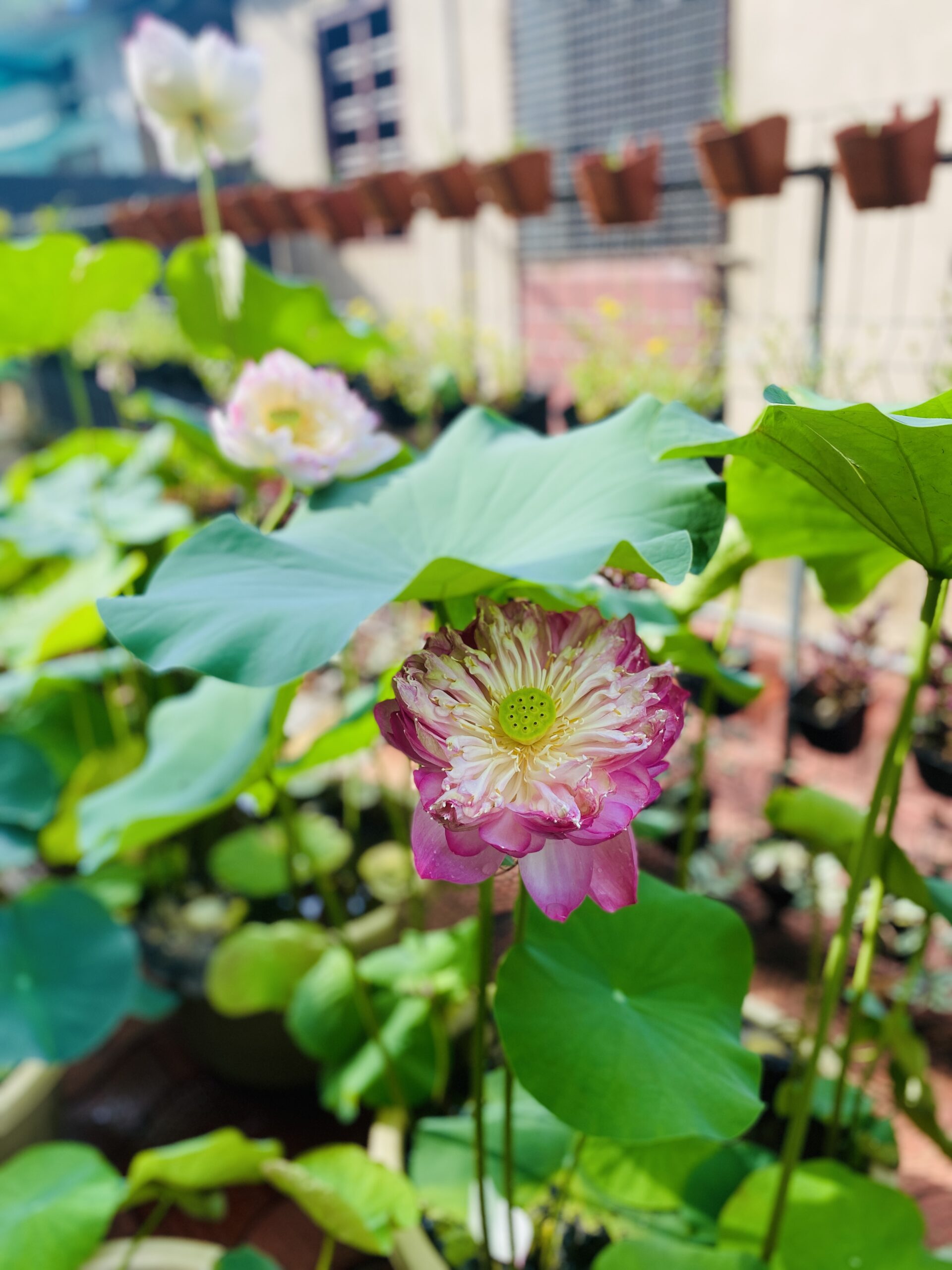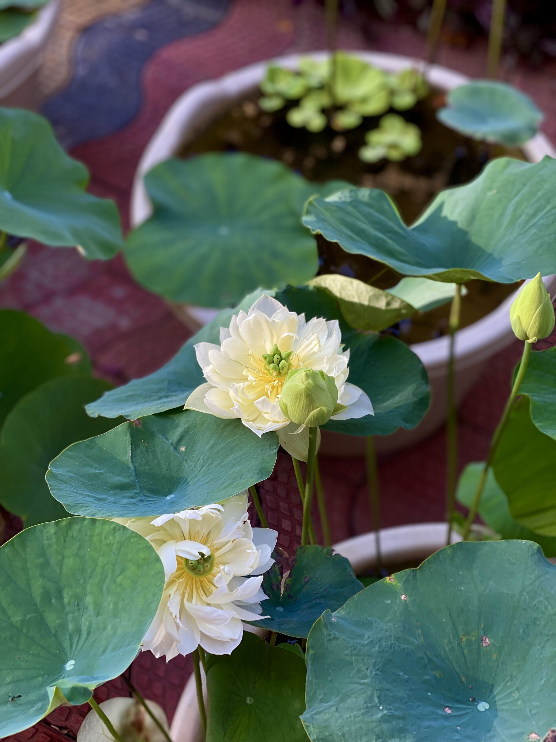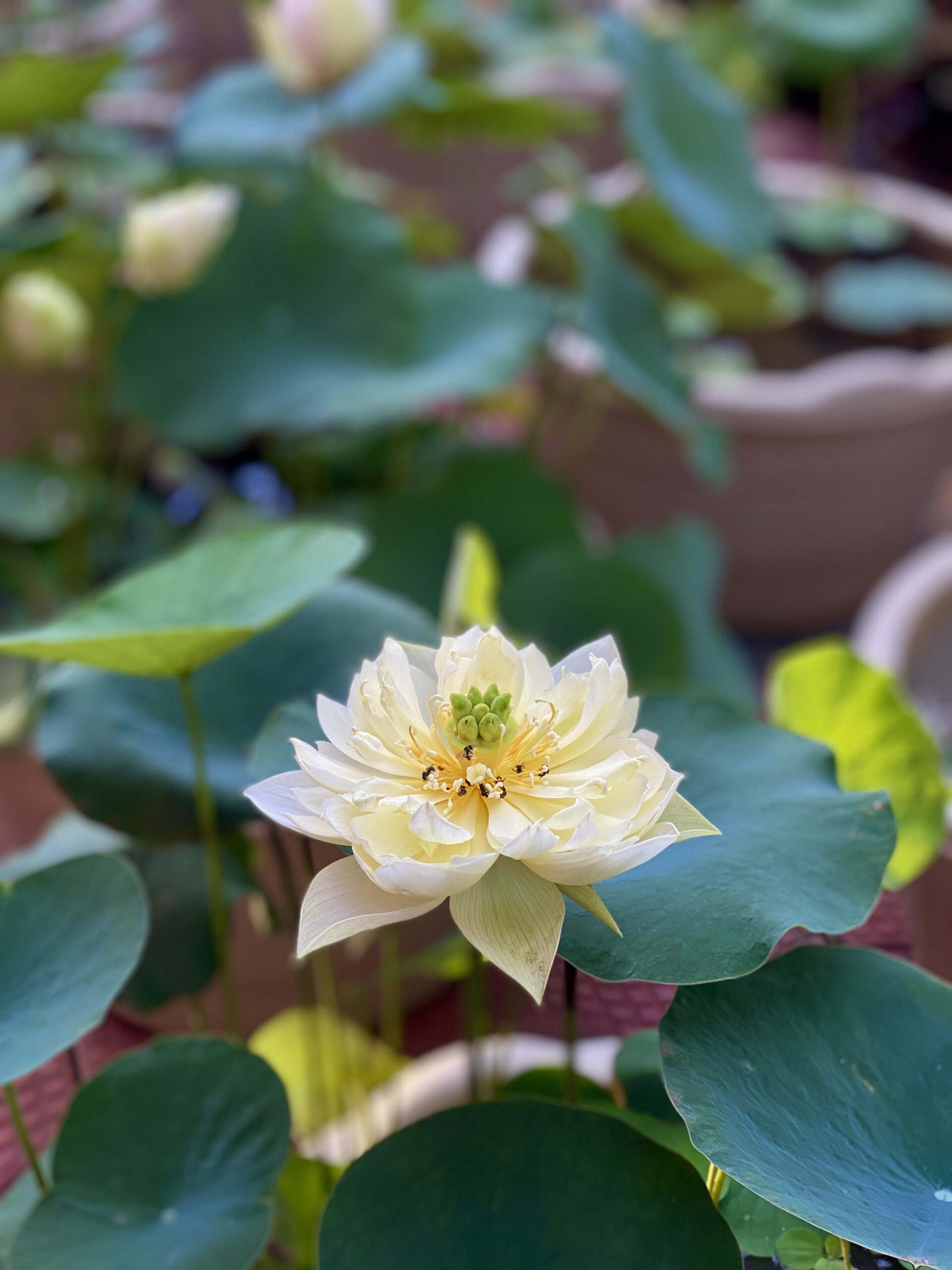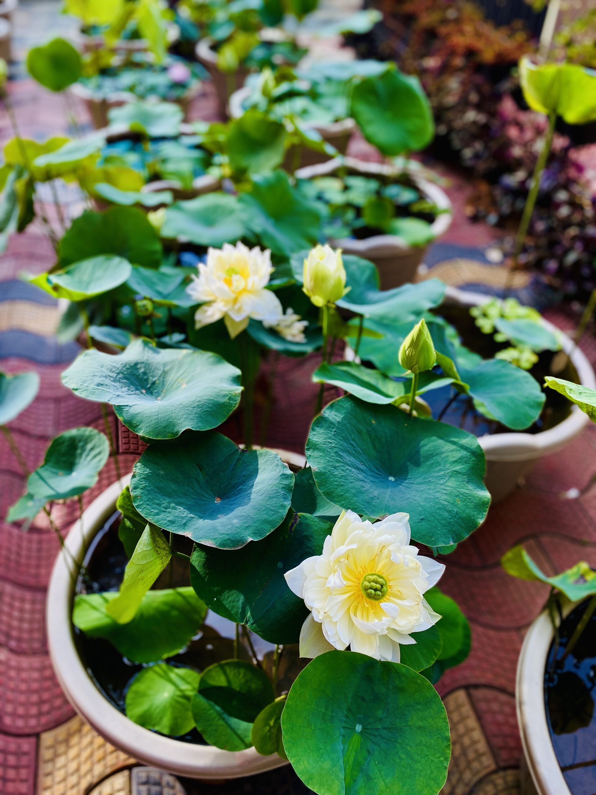 Lotus plants are great in fish ponds—they provide shade, oxygen, and shelter for fish like koi and guppies