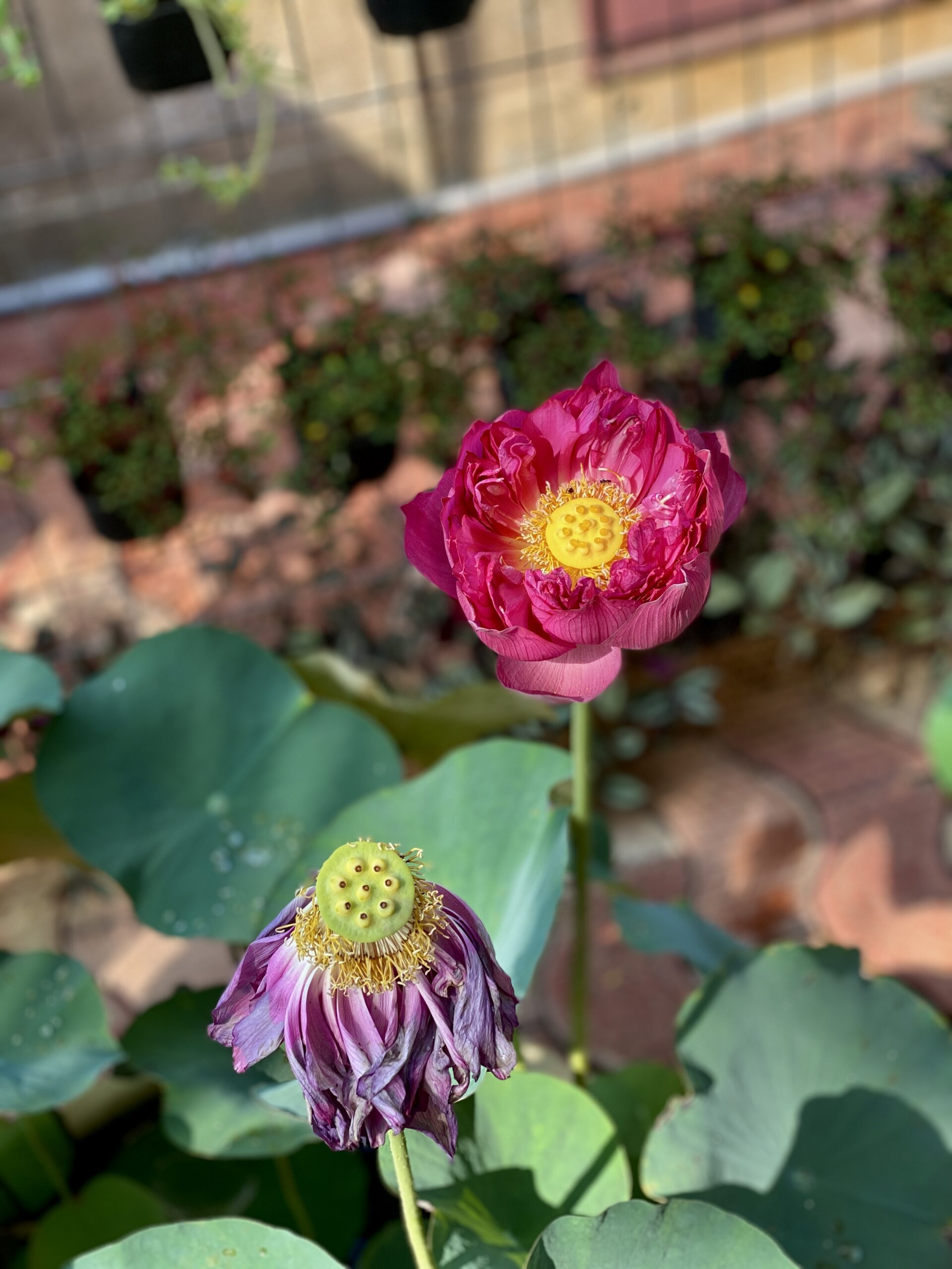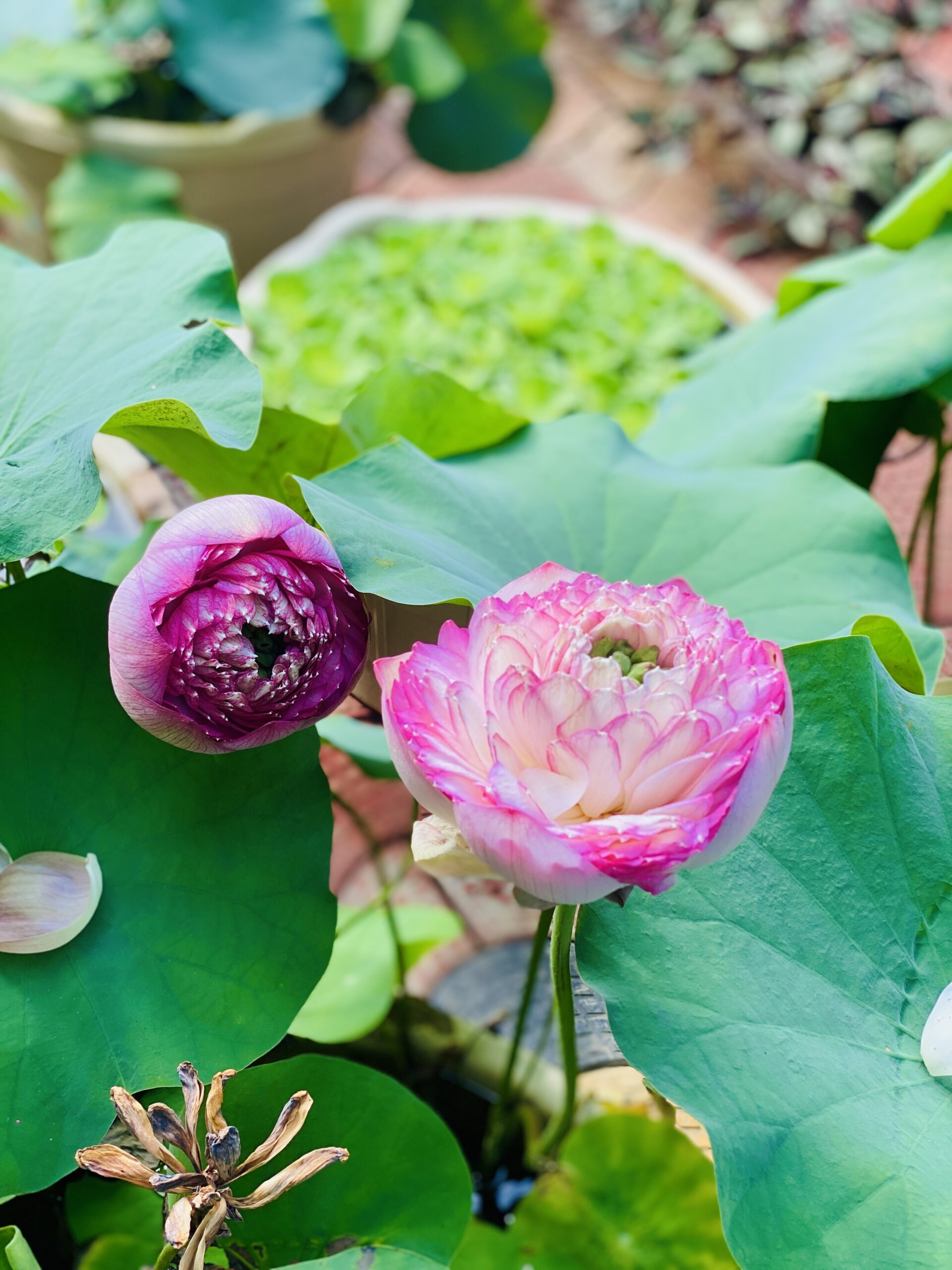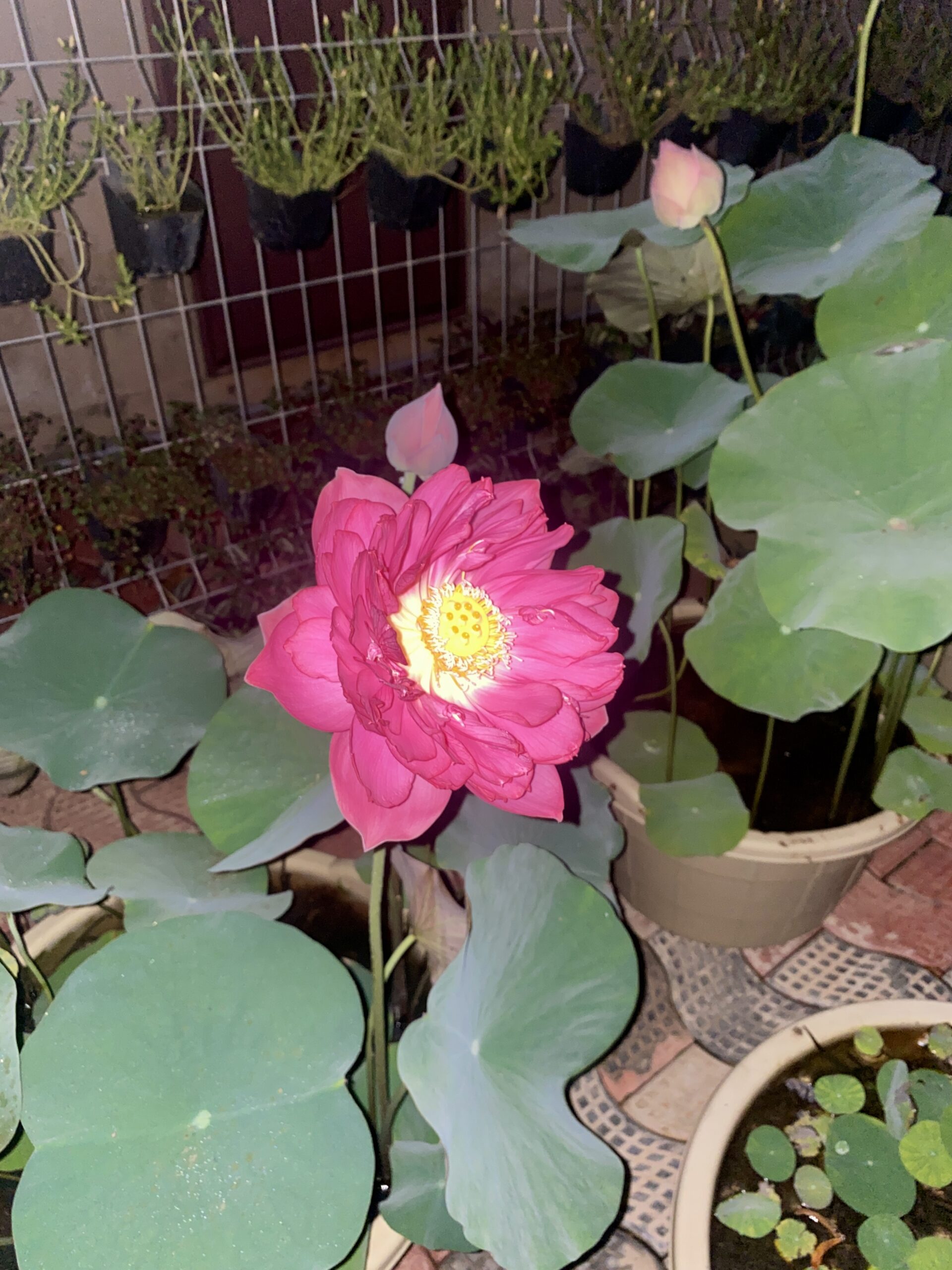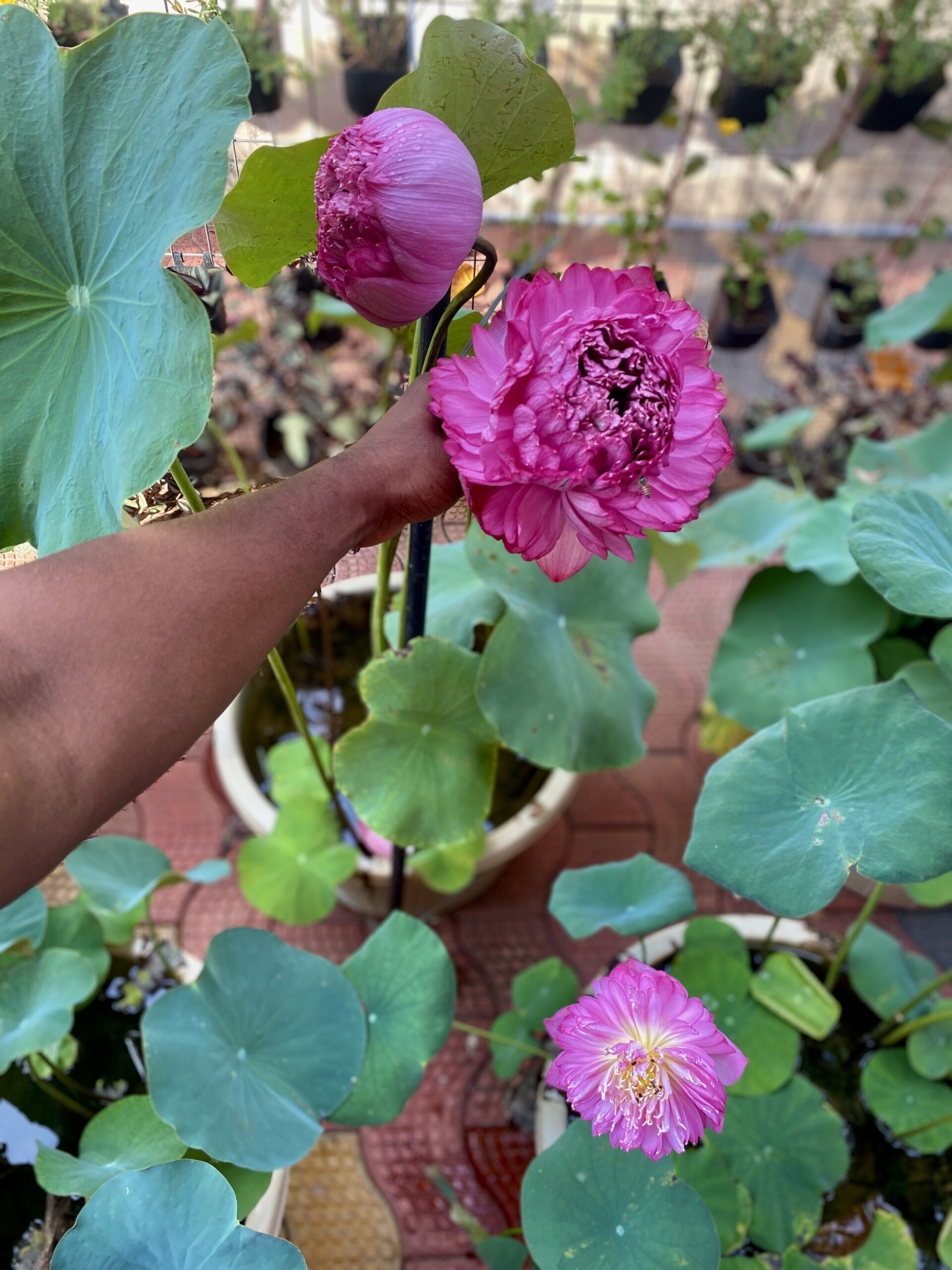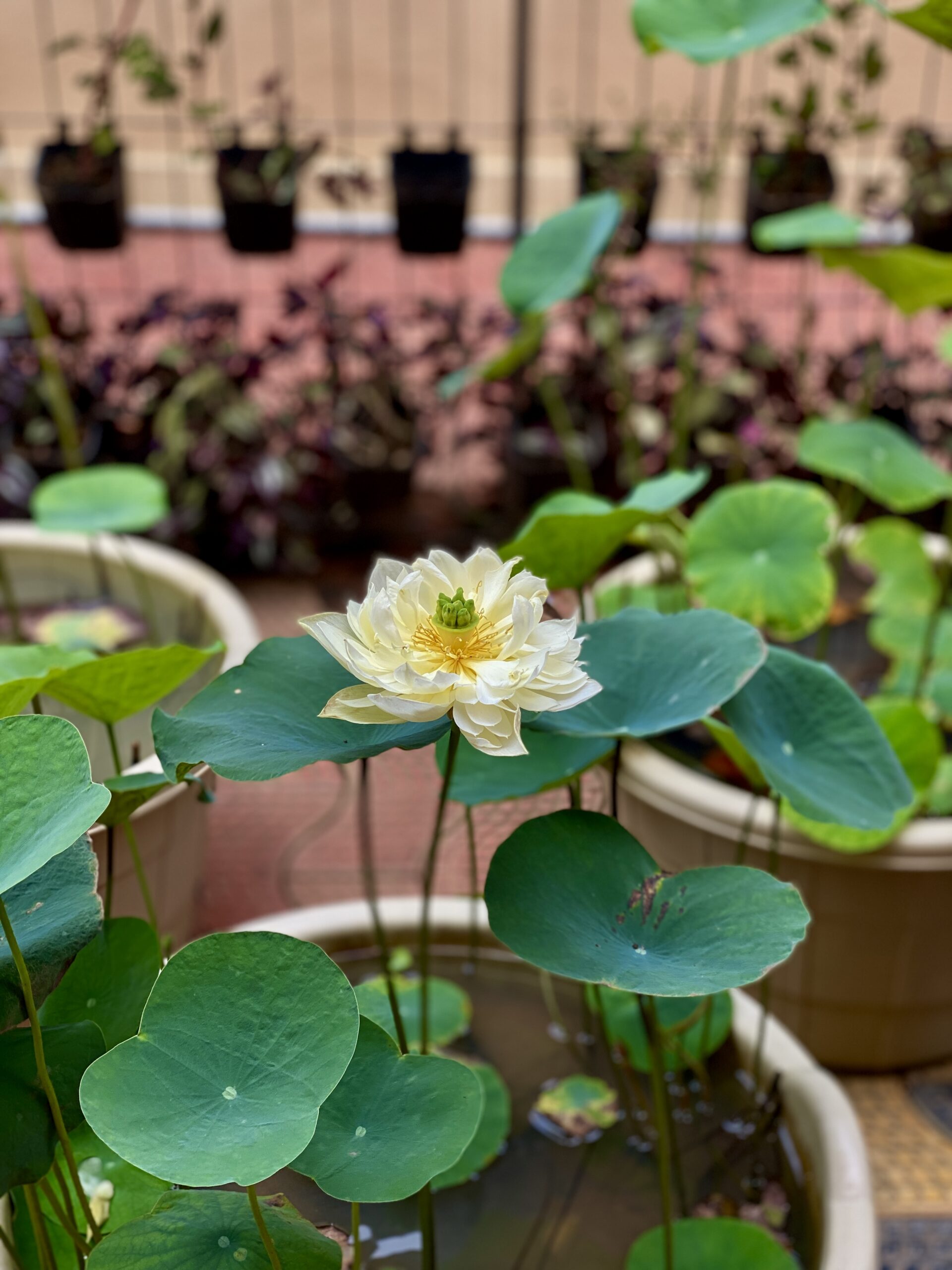 Lotus plants are great in fish ponds—they provide shade, oxygen, and shelter for fish like koi and guppies