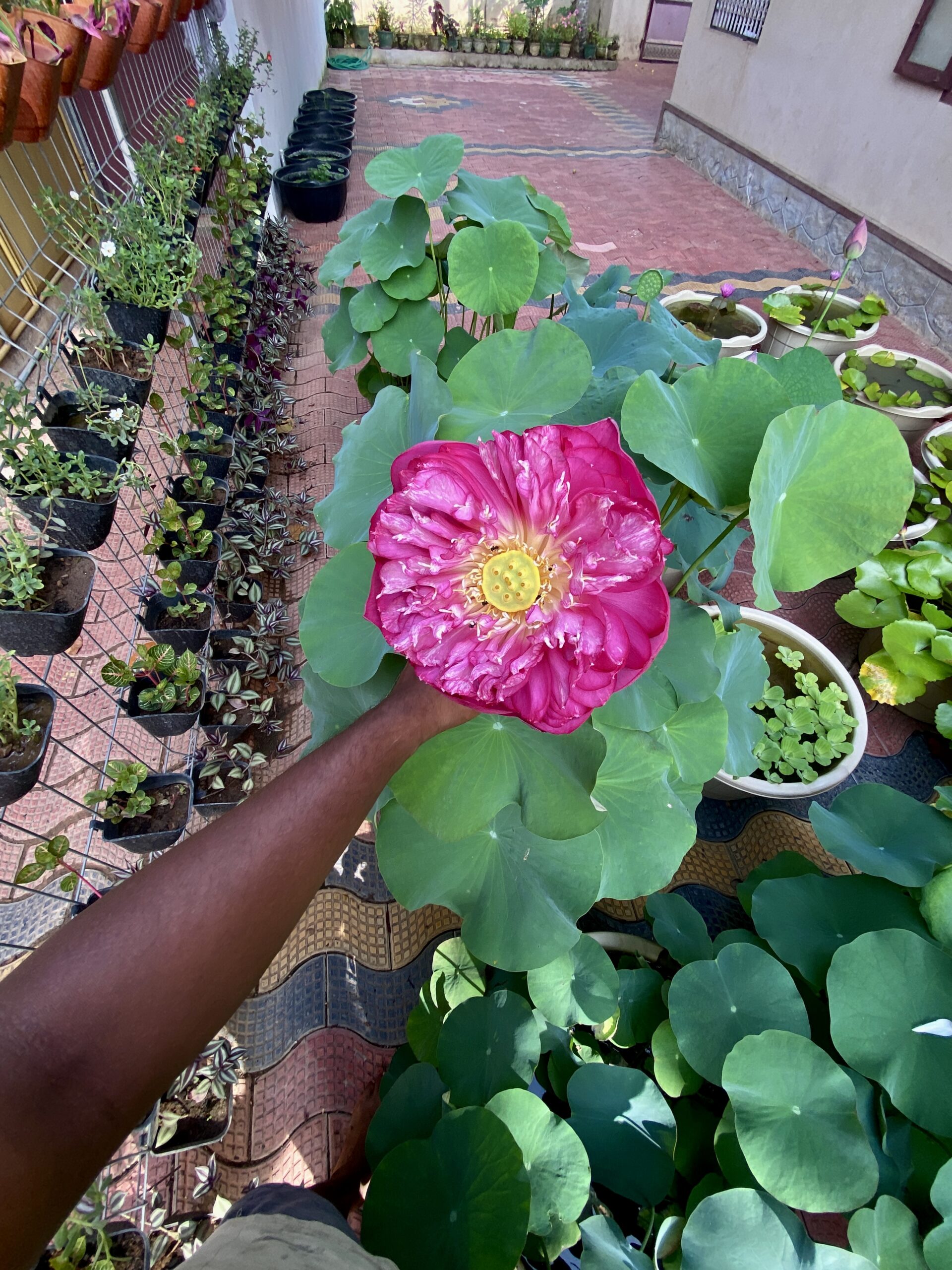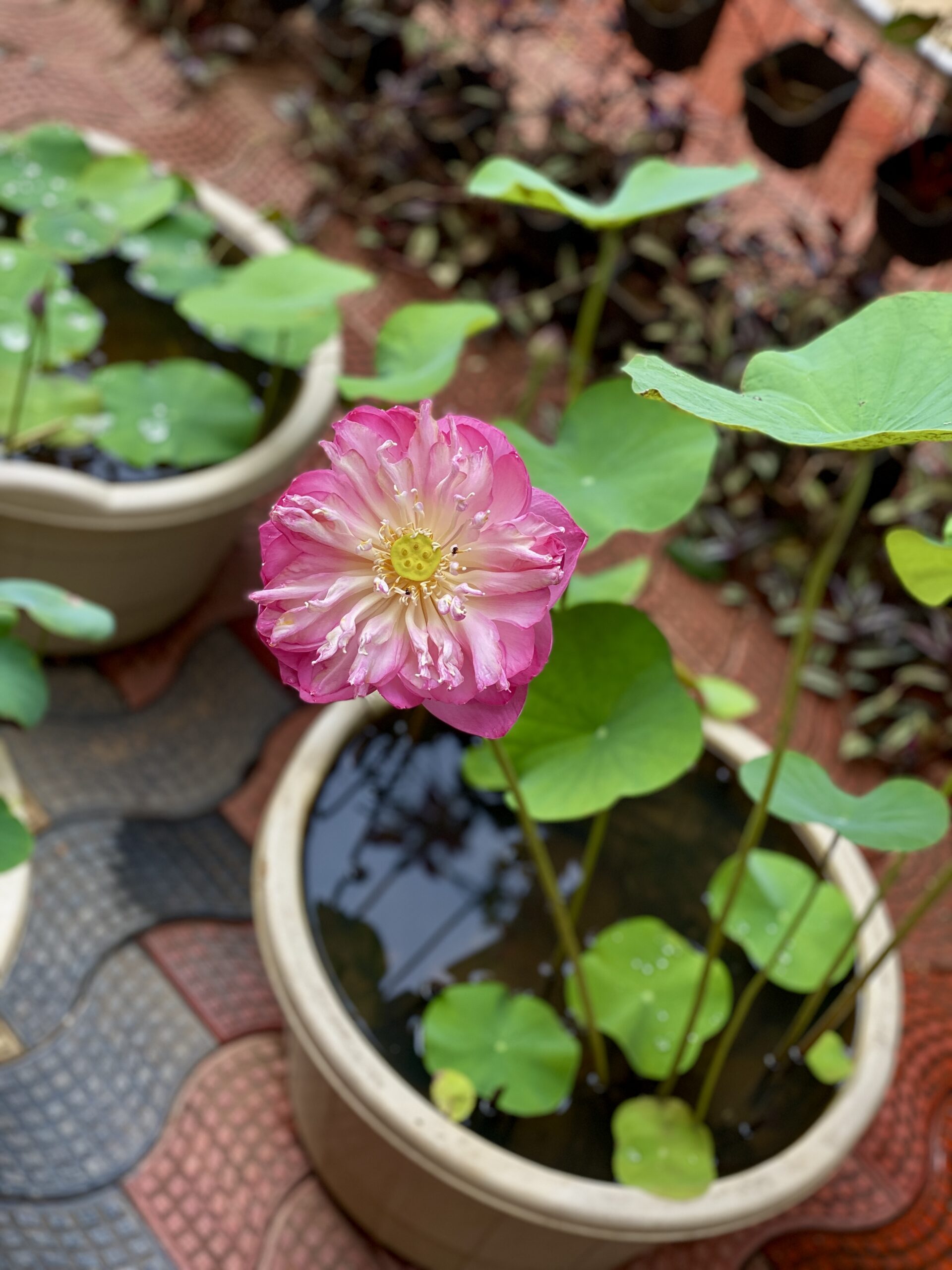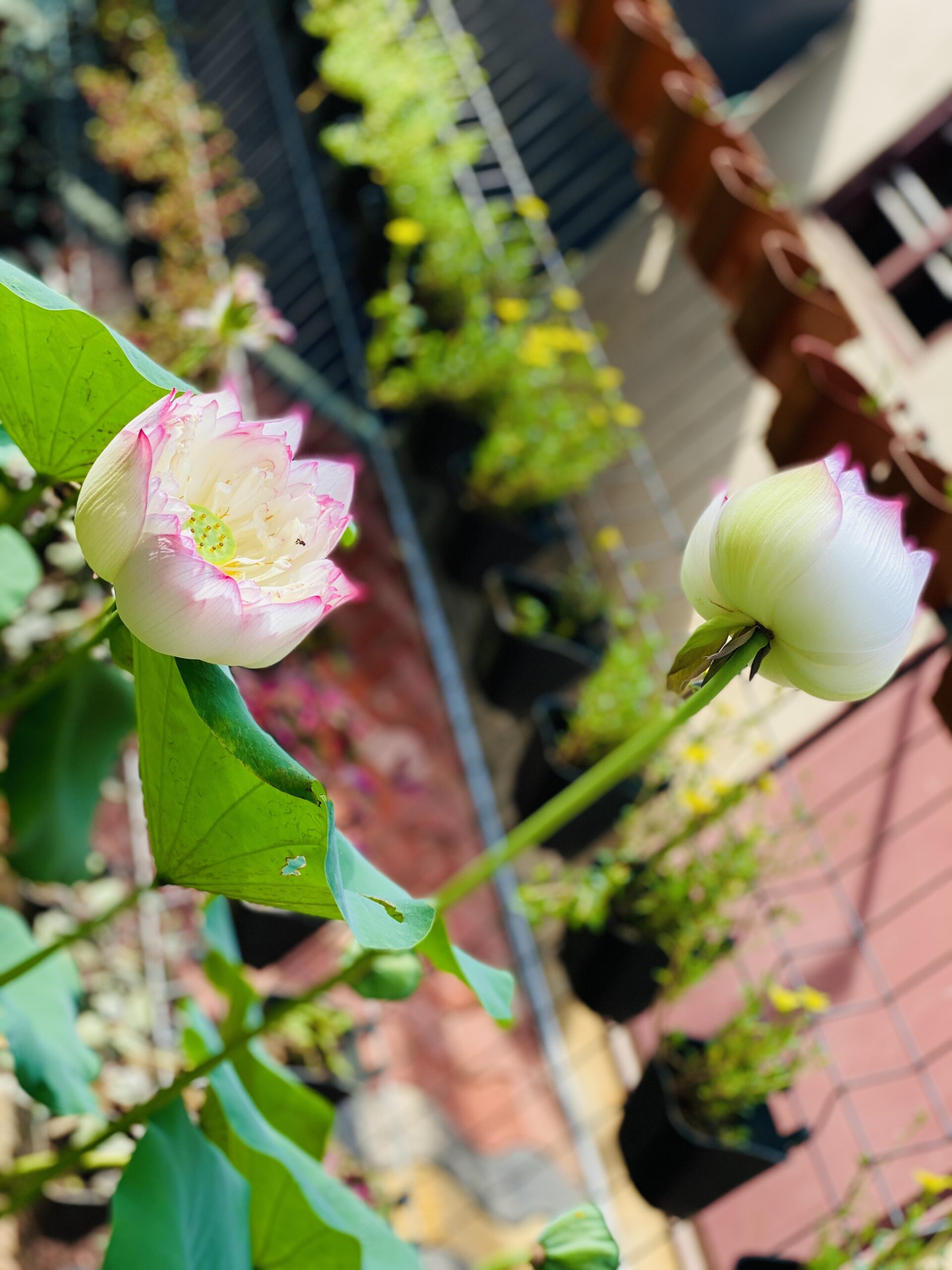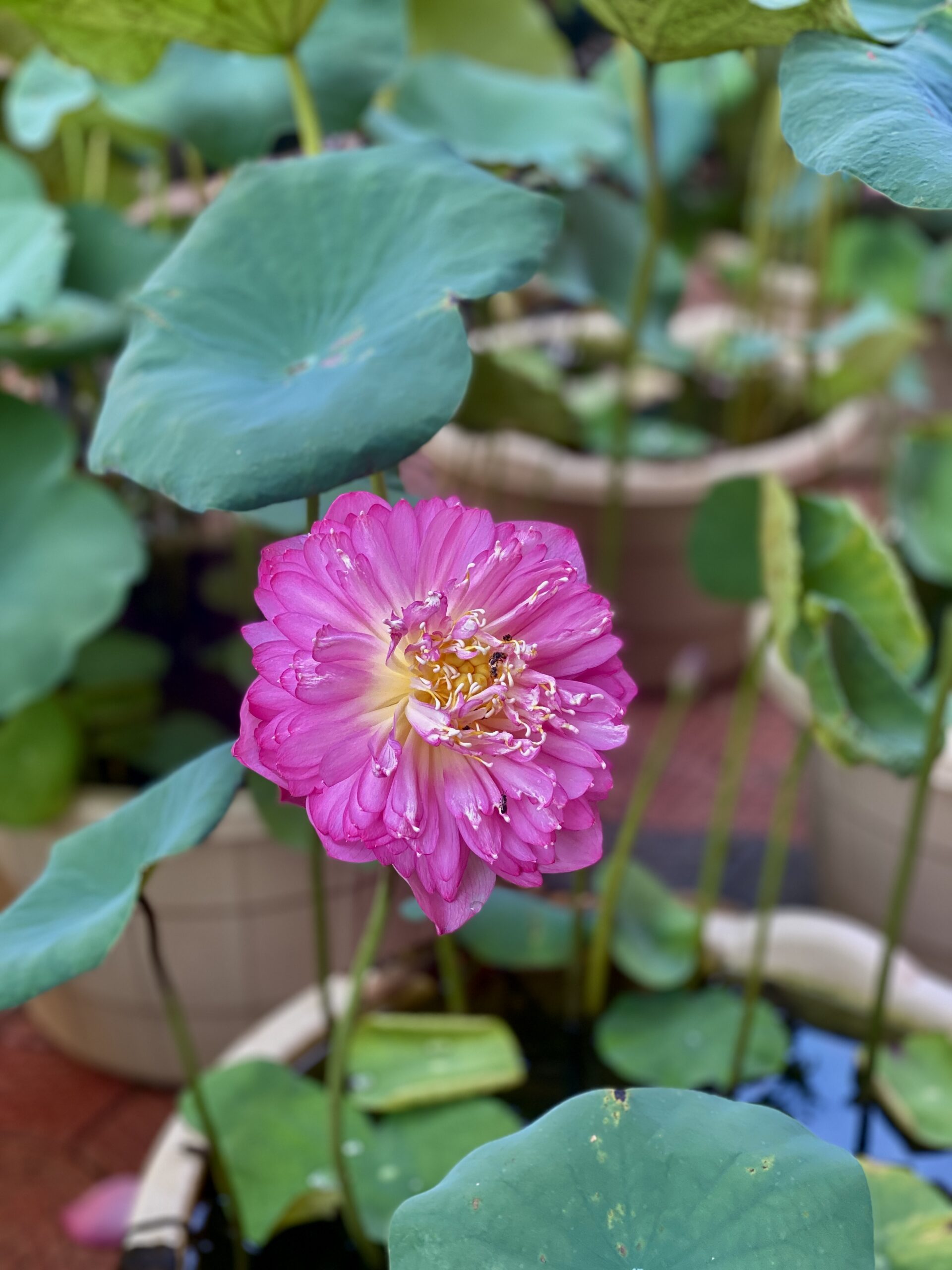 Lotus plants are great in fish ponds—they provide shade, oxygen, and shelter for fish like koi and guppies